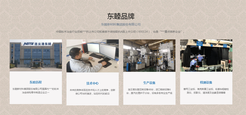 連云港東睦新材料有限公司成立于2011年,注冊資金1.5億,國內以粉末冶金機械零件生產為主業的上市公司(股票代碼:600114)八大生產基地生產之一,目前已發展成為對國內粉末冶金非常有影響力的企業,已連續多年在國內粉末冶金行業中處于市場重要地位,在世界粉末冶金行業及相關市場也具備一定的美譽度,東睦于2017年,公司成功入選我國“第二批制造業單項示范企業”。