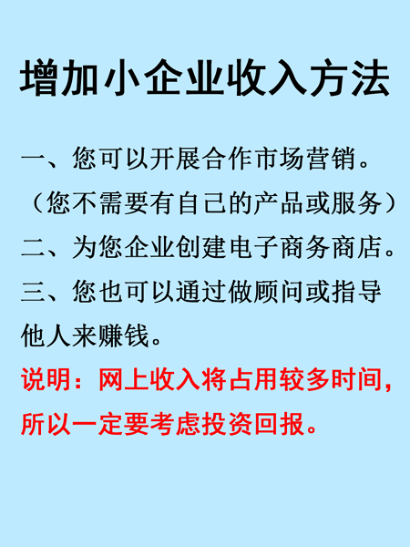 中小微企業老板電子商務網站增加互聯網收入。中小微企業老板,可以通過網上增加更多收入。如果您希望提升您的生意,增加您的網上收入。下面有三種方法可以嘗試: