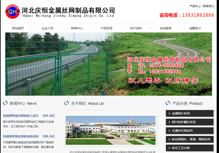 河北慶恒金屬絲網(wǎng)制品有限公司成立于2013年08月14日,注冊地位于安平縣大何莊鄉(xiāng)長汝村東500米處,法定代表人為劉學(xué)偉。經(jīng)營范圍包括生產(chǎn)、銷售、安裝:護(hù)欄網(wǎng)、石籠網(wǎng)、鋼板網(wǎng)、刀片刺繩、防護(hù)網(wǎng)、網(wǎng)片、刺絲、養(yǎng)殖網(wǎng)、鋼格柵、聲屏障、鋼筋網(wǎng)、刺絲滾籠、機(jī)場圍界、爬架網(wǎng)、監(jiān)獄隔離網(wǎng)、防眩網(wǎng)、隔離柵、市政護(hù)欄、波形護(hù)欄、邊坡防護(hù)網(wǎng)、基坑護(hù)欄、鋅鋼護(hù)欄、鐵藝護(hù)欄、建筑模板、體育場圍網(wǎng)、金屬結(jié)構(gòu)件、多元合金共滲、鋼橫梁、預(yù)埋件、支座板、防落梁、T型鋼橋梁、鐵路配件、鋼結(jié)構(gòu)人行通道、檢查梯、吊籃、支架;銷售:交通設(shè)施、環(huán)保設(shè)施及進(jìn)出口業(yè)務(wù)。(依法須經(jīng)批準(zhǔn)的項(xiàng)目,經(jīng)相關(guān)部門批準(zhǔn)后方可開展經(jīng)營活動)