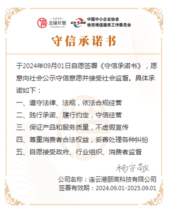 于2024年09月01日自愿簽署《守信承諾書》,愿意向社會公示守信意愿并接受社會監督。具體承諾如下: